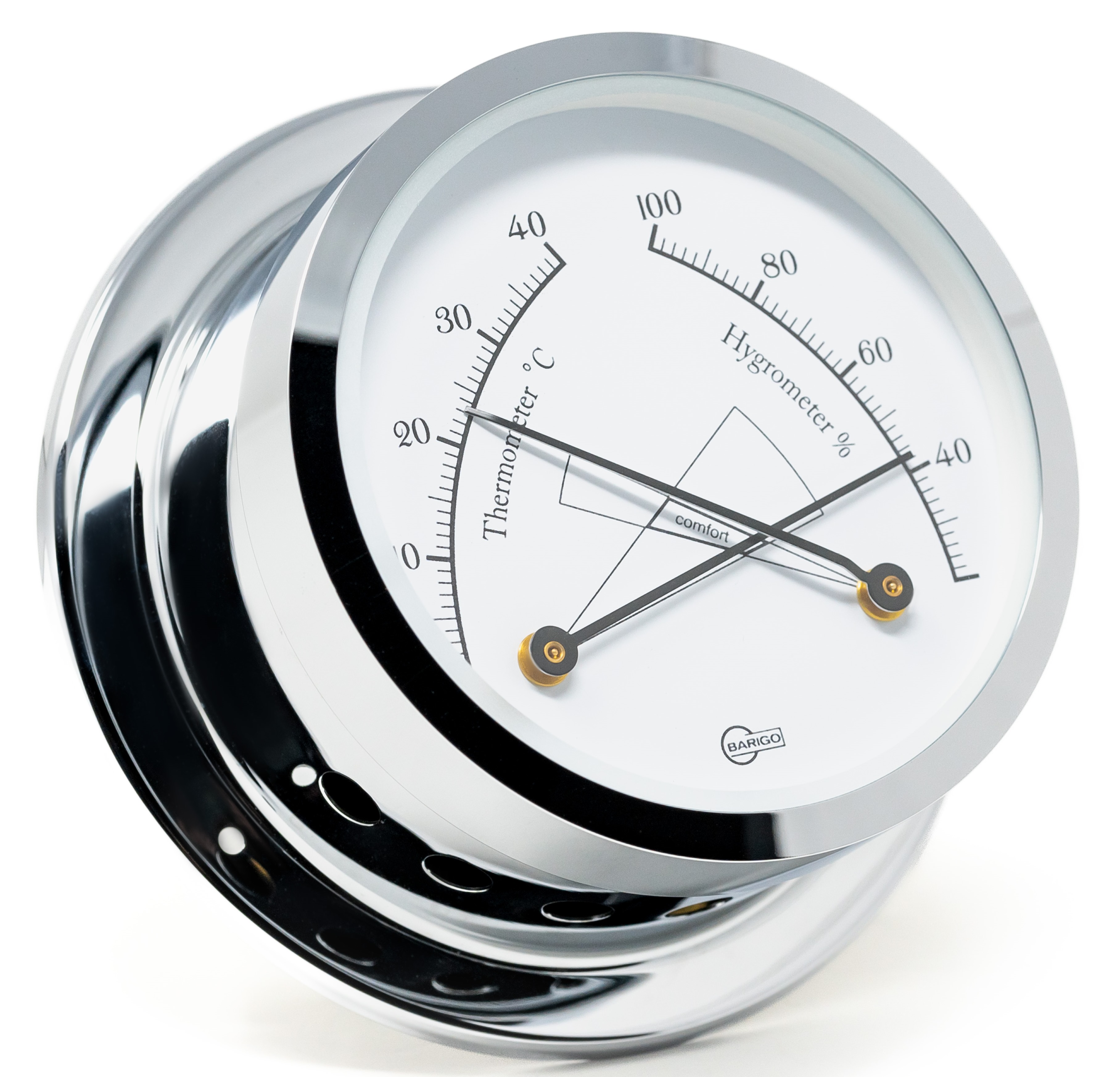 The Barigo Star series thermo-hygrometer is a compact, high-quality measuring instrument made of chrome-plated brass,
